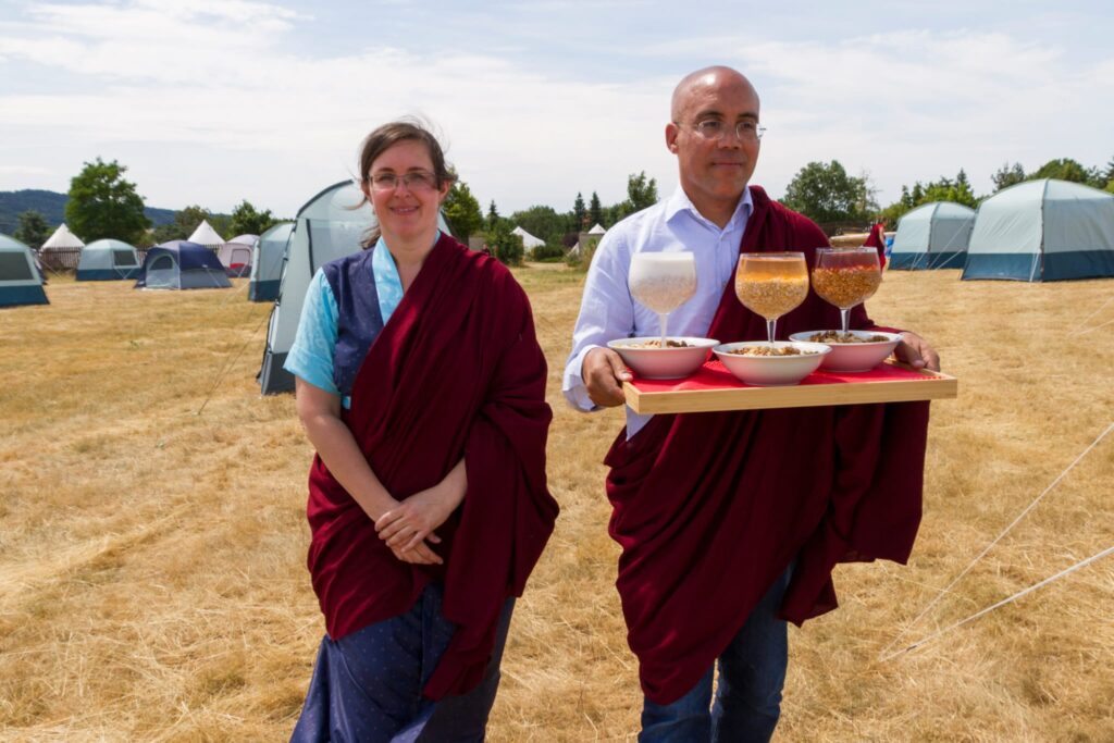 These blessed days brought a wonderful cohesion to the sangha as everyone harmoniously moved between hearing the teachings, practicing in the chö gar, engaging in daily group practice, community life, and the shared responsibilities of maintaining the retreat environment.