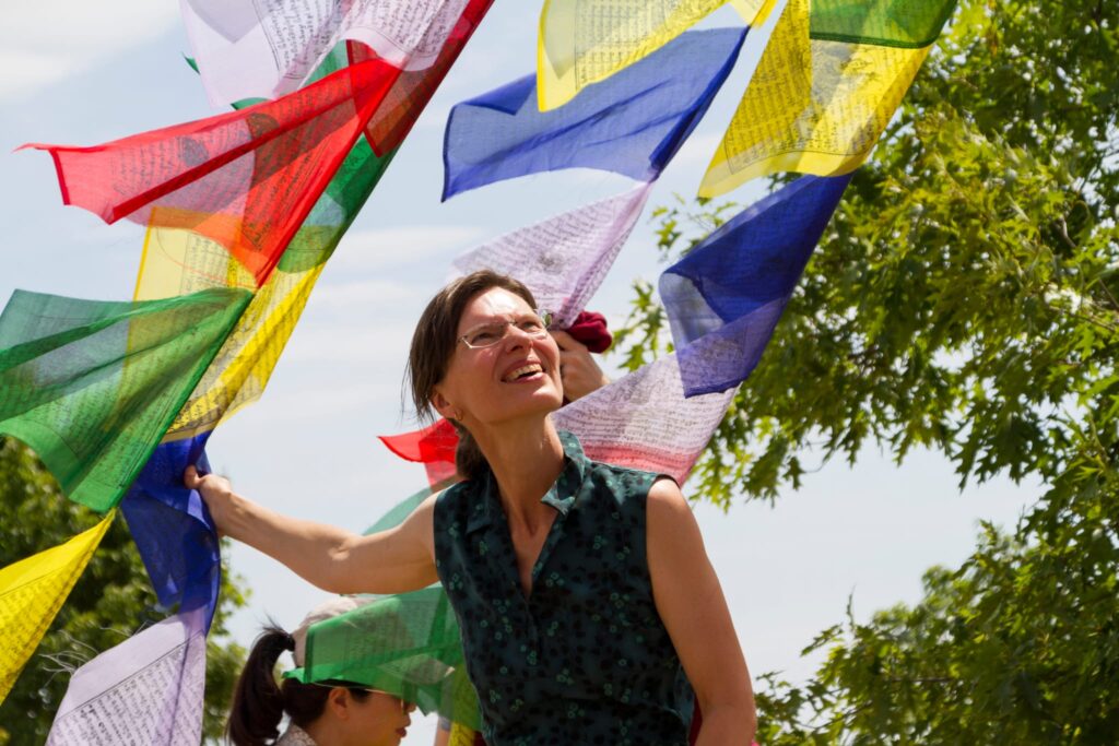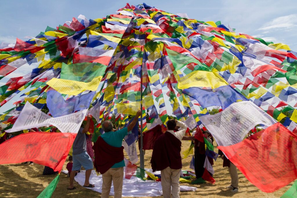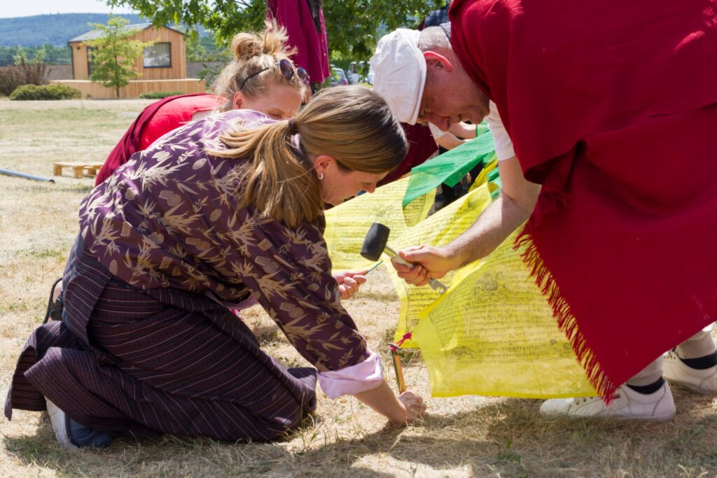 The chö gar was established following all proper rituals for making offerings and preparing the land. Following this, the sangha raised lungta flags and joyfully shouted the traditional “Kiki Soso!” for the tendrel of long life.