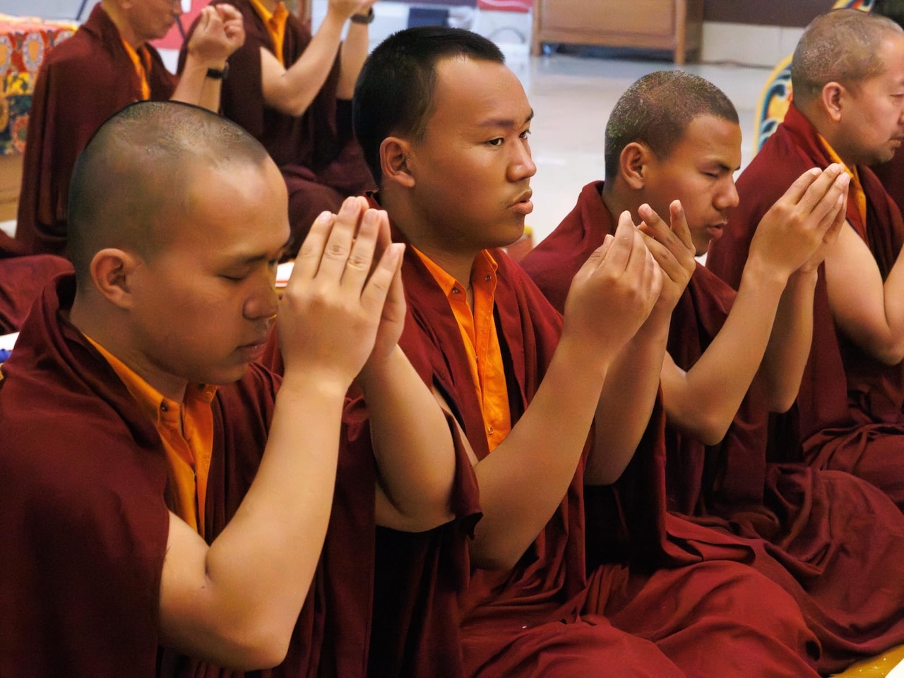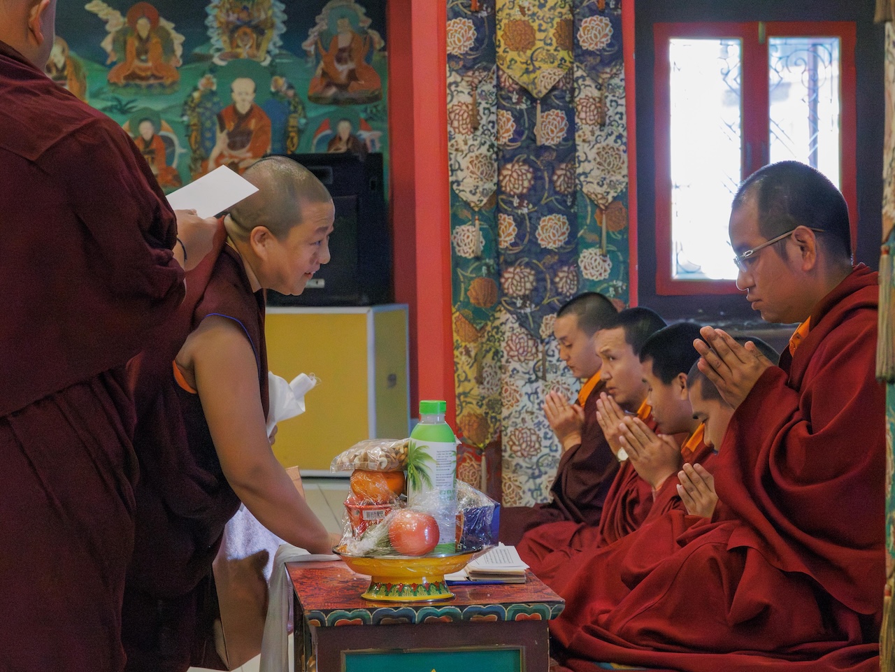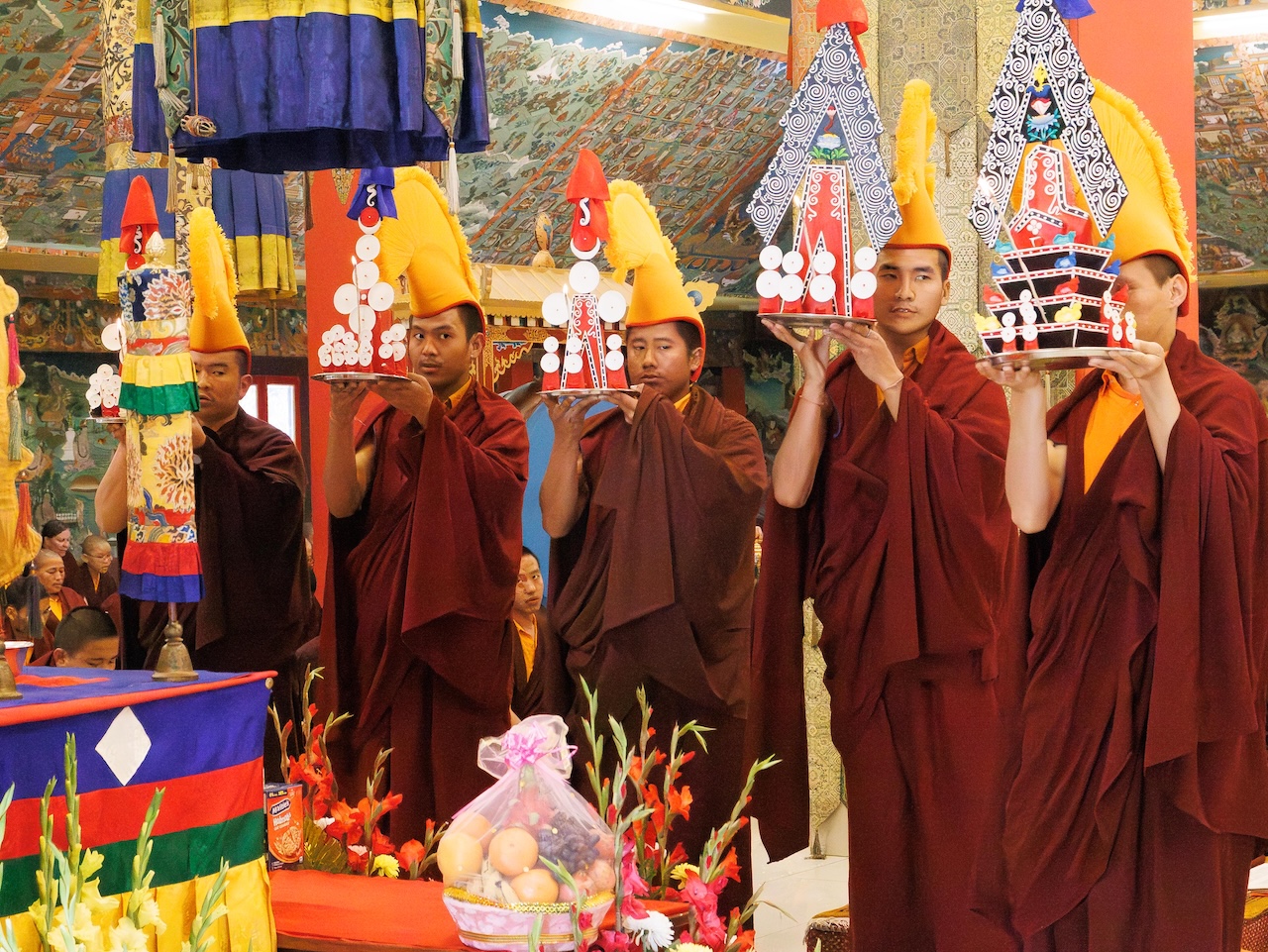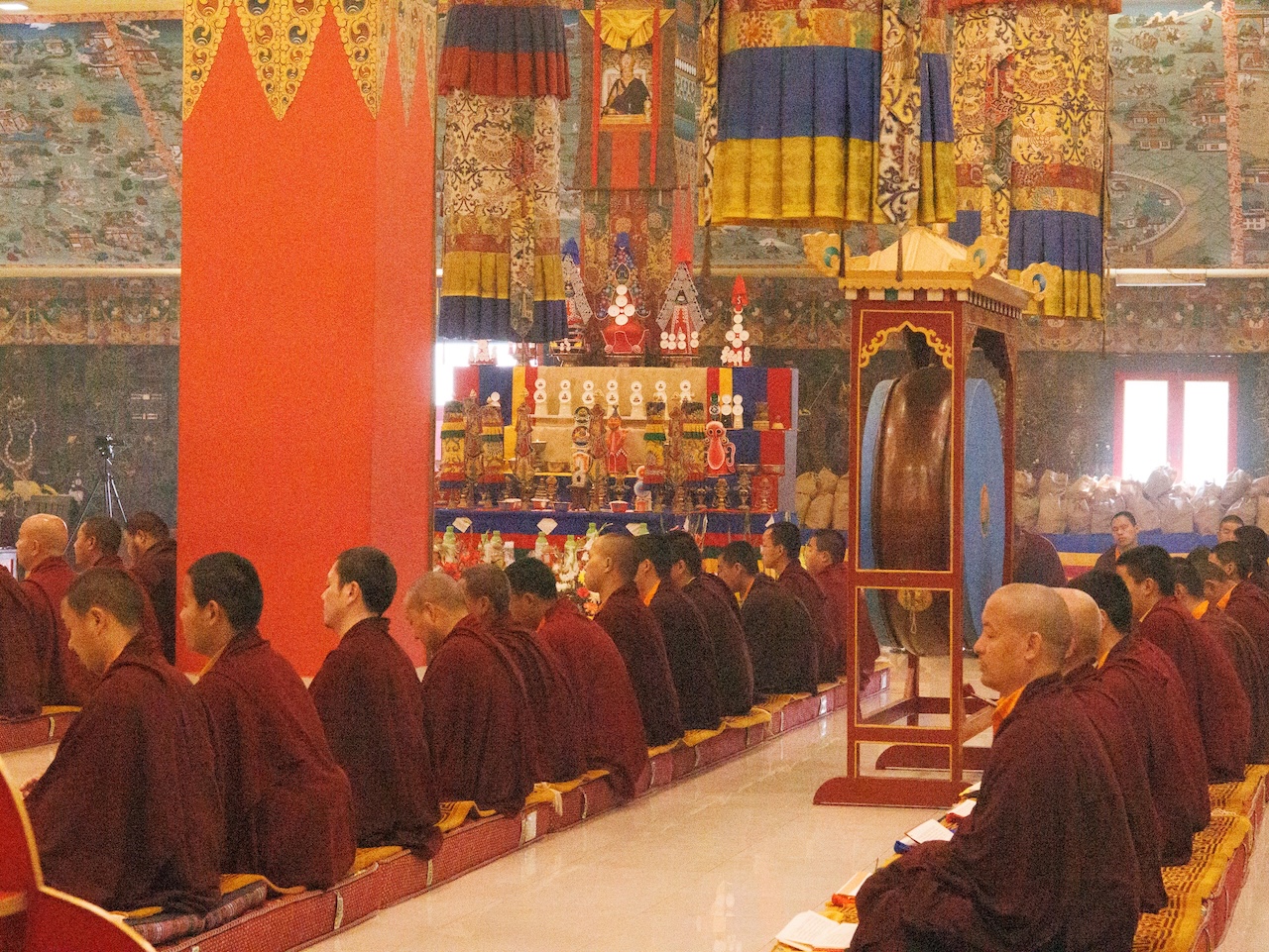On the third day of Losar of the year of the Fire Horse, 2026, the sangha of Mindrolling gathered to make vast offerings of ganachakra (feast offerings) to mark the anniversary of the parinirvana of Kyabje Minling Trichen. The assembly was led by Minling Dungse Rinpoche and included Minling Jetsün Rinpoche, Minling Jetsün Khandro Rinpoche, Minling Jetsün Dechen Paldrön, Sangyum Kushog, Venerable Khentrul Marpa Rinpoche and the other Mindrolling tulkus, khenpos, and monks, as well as nuns of Samten Tse, and Mindrolling International sangha members. Many more sangha members who could not attend in person joined the practice on the internet by live stream. The entire assembly joined together with great devotion to accomplish the vast ganacakra.