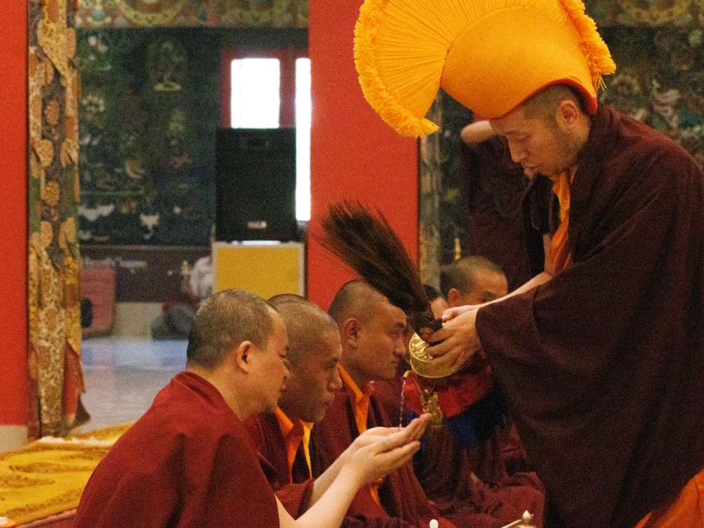 The blessings of the lineage were palpable as this year’s practice was presided over by Kyabje Minling Dungse Rinpoche, the 13th throne holder of Mindrolling who took his seat on the throne and led the gathered assembly during the intensive days of practice. This most fortunate occasion was blessed with presence of the Kyabje Minling Jetsün Rinpoche, Kyabje Minling Jetsün Khandro Rinpoche, Kyabje Trulshig Yangsi Rinpoche, the Dorje Lopön Khentrul Marpa Rinpoche, Minling Umdze Lodroe Gyaltsen, along with many rinpoches, tulkus, khenpos, and monks, nuns and lay practitioners from all around the world.
